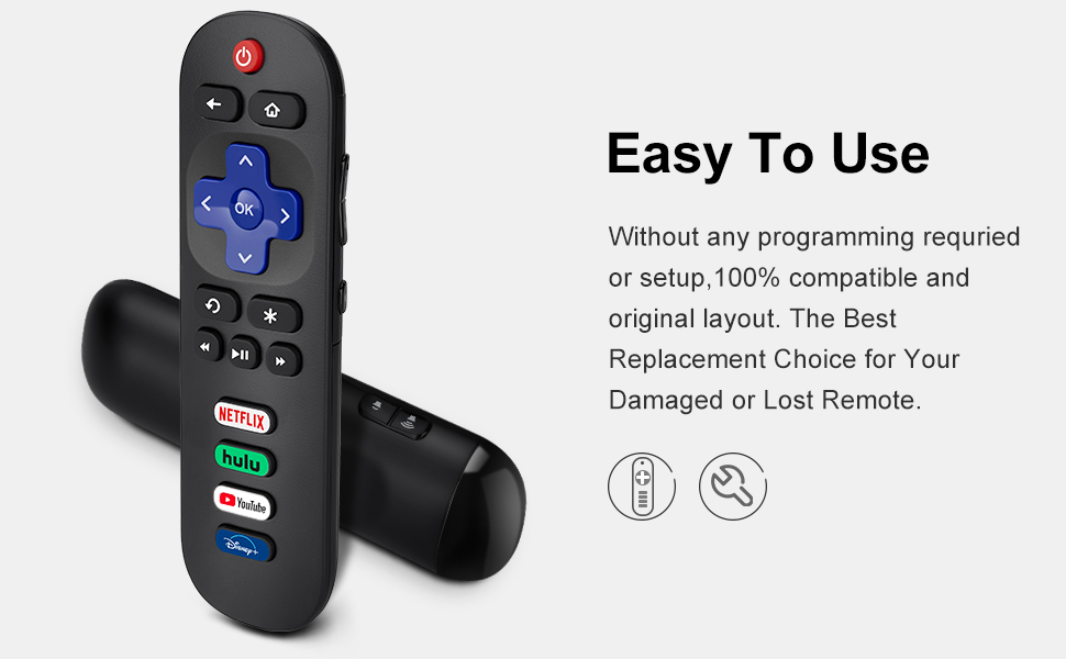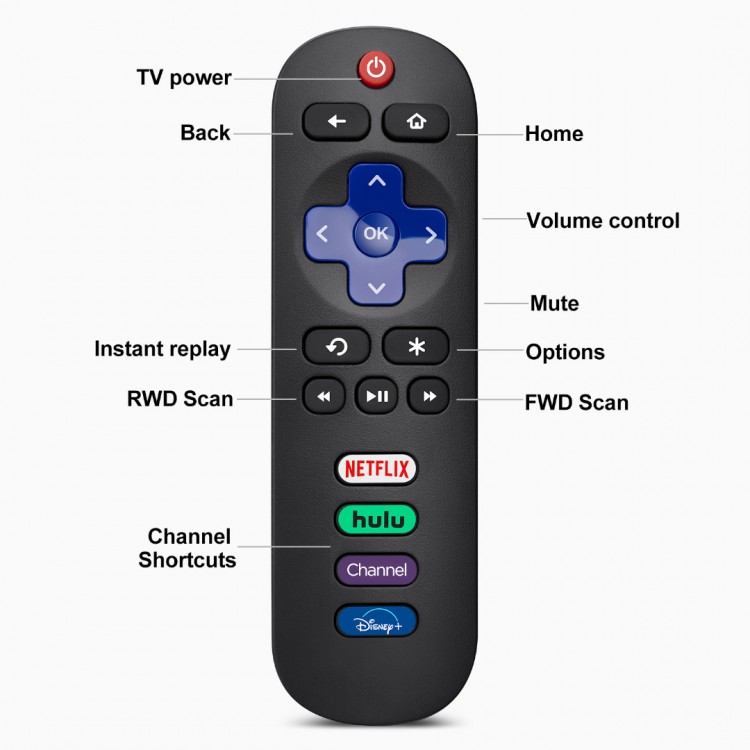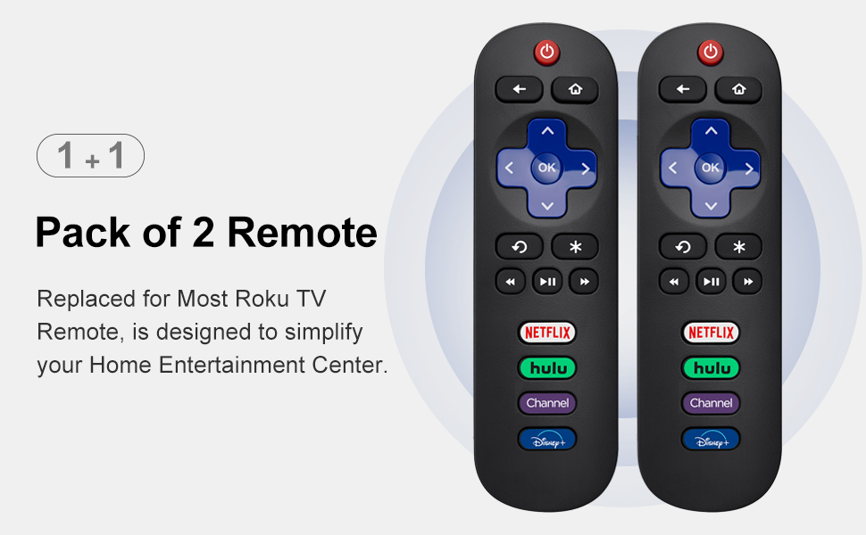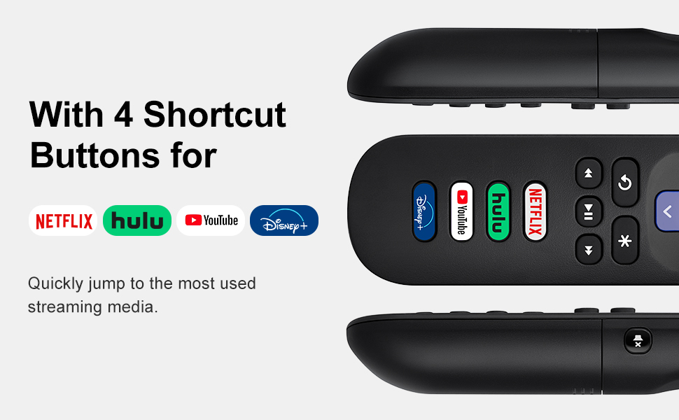 • SHORTCUT BUTTONS: Get to favorite apps quickly with shortcut buttons and it have 4 shortcuts buttons (Disney, Netflix, Roku Channel, Hulu). Precisely control far from 10 meters/30 feet and it supports over total 160,000 clicks for all buttons via approved tests.